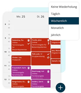 Standort- und behandlerübergreifendes Terminmanagement mit übersichtlicher Ressourcenplanung. Optional erweiterbar um eine Online-Terminbuchung für Patienten.